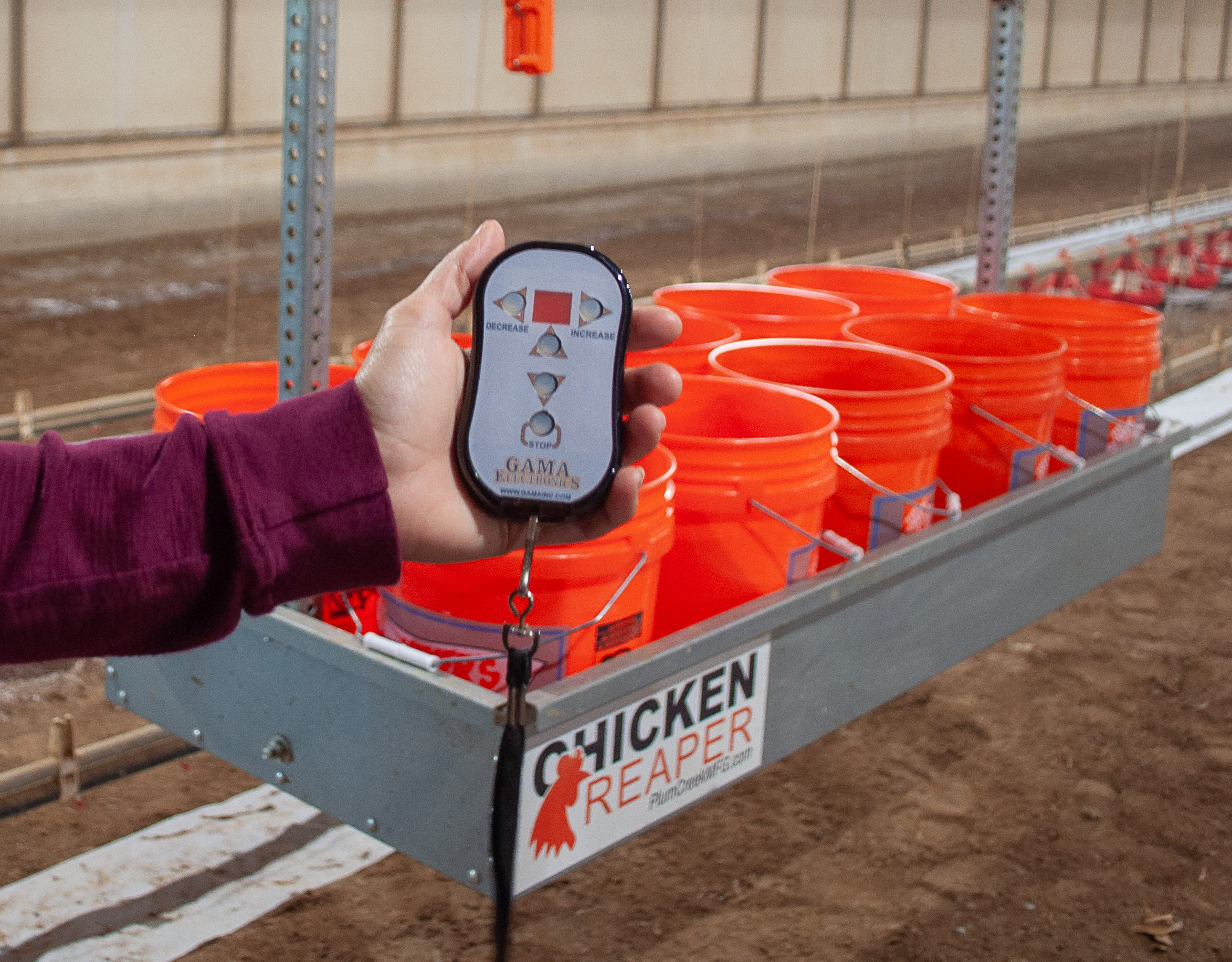 The Chicken Reaper will not only save your back but also reduce the amount of time spent per day walking each house. Whether you’re removing dead birds, setting out trays for supplemental feeding, or using it to carry a replacement fan motor to the far end of your house, it will always be at your side ready to carry the load. The Chicken Reaper runs on a 2×6 wood track that is readily available at your local lumberyard and easy to install. This simple and sturdy track is the economical solution for today’s poultry houses. Contact us or download the brochure to learn more about how you will benefit from adding the Chicken Reaper to your poultry operation!